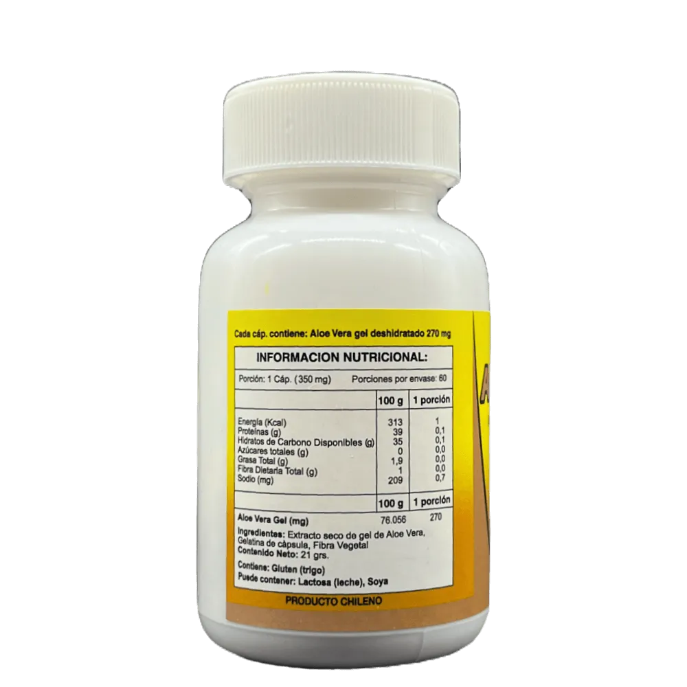 Cada cápsula contiene Aloe Vera Gel Deshidratado 270 mg